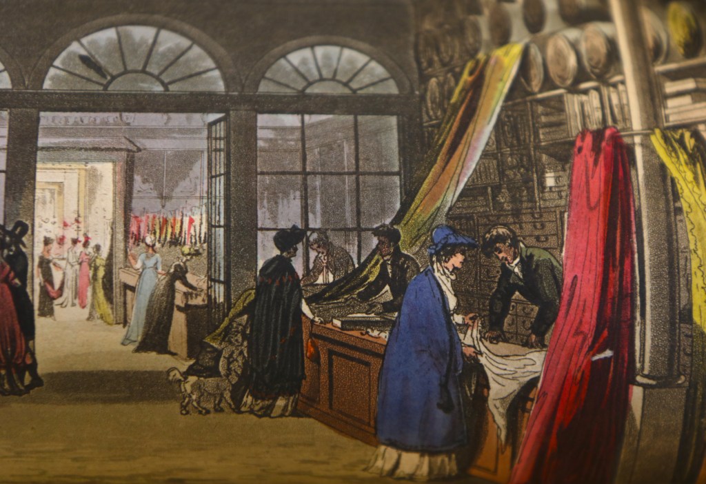 Today, if you go to 89 Pall Mall Street in London, you will find The Royal Automobile Club, but in the early 1800s, you might have spotted Jane shopping for hats and ribbons. Pall Mall was the London’s most fashionable streets and is often mentioned by Jane Austen. For example, it is outside a shop in Pall Mall that Colonel Brandon hears of John Willoughby’s engagement to Miss Grey in Sense and Sensibility. Indeed, the most frequently mentioned item of shopping in Jane Austen’s letters is fabric for dressmaking and she would undoubtedly have known Harding’s.